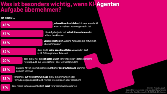 Erfahren Sie in der aktuellen Telekom MMS Studie, wie Verbraucher*innen und IT-Leads über den Einsatz von KI-Agenten denken – und welche Kriterien für Akzeptanz und Erfolg entscheidend sind.