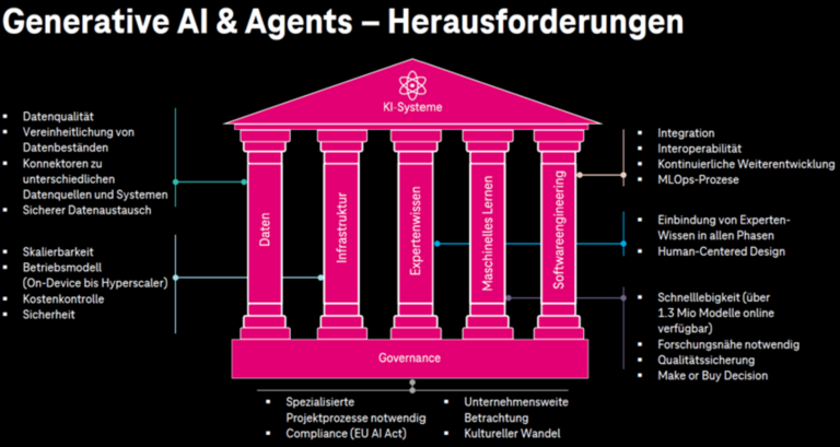 - Governance & Regulierung: Der Einsatz von KI-Systemen erfordert klare Leitplanken. Der EU AI Act und die DSGVO machen es Pflicht, dass Ihre Agenten nachvollziehbar arbeiten, sensible Informationen schützen und jederzeit kontrollierbar bleiben. Transparenz, Monitoring und Human-in-the-Loop sind keine Option – sie sind ein Muss.