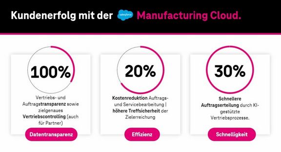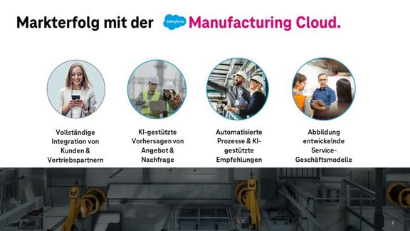 Außerdem können mit dieser Lösung Daten sichtbar gemacht sowie in Erkenntnisse und nachhaltige Aktionen überführt werden. Die Salesforce Manufacturing Cloud integriert Kunden und Vertriebspartner vollständig, sorgt auf Grundlage künstlicher Intelligenz für zuverlässige Vertriebsprognosen und gibt klare Handlungsempfehlungen.