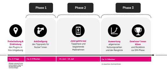Damit das Tippspiel auch rege genutzt wird und alle Mitarbeitenden über die Regeln sowie Nutzung Bescheid wissen, sollte die Kommunikation in drei Phasen ablaufen: