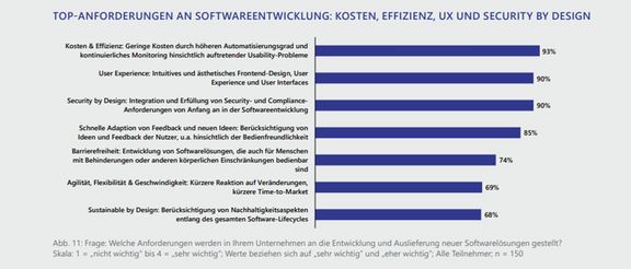 Weitere Beweggründe liegen etwa in Vorteilen im Employer Branding durch höhere Mitarbeiterzufriedenheit dank nutzungszentrierter Software oder aber in der Verkleinerung des CO2-Fußabdrucks, beispielsweise durch „Sustainable by Design“.