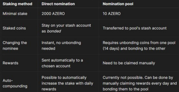 Below you find a comparison between Direct nomination and Nomination pool.